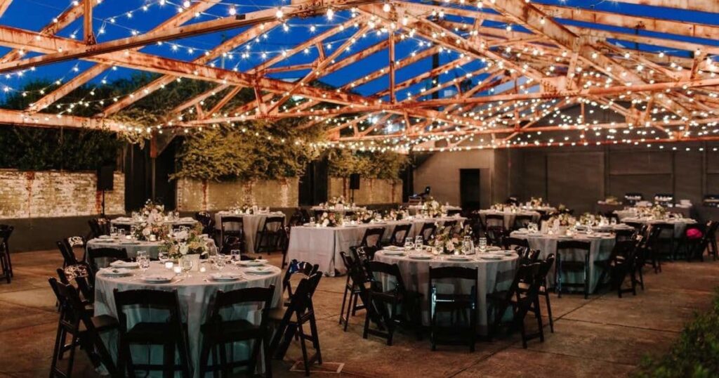 From elegant string lights and color-changing uplights to oversized props, custom décor, and architectural lighting, we handle everything in-house. Design, setup, takedown, and storage; it’s all in our hands!